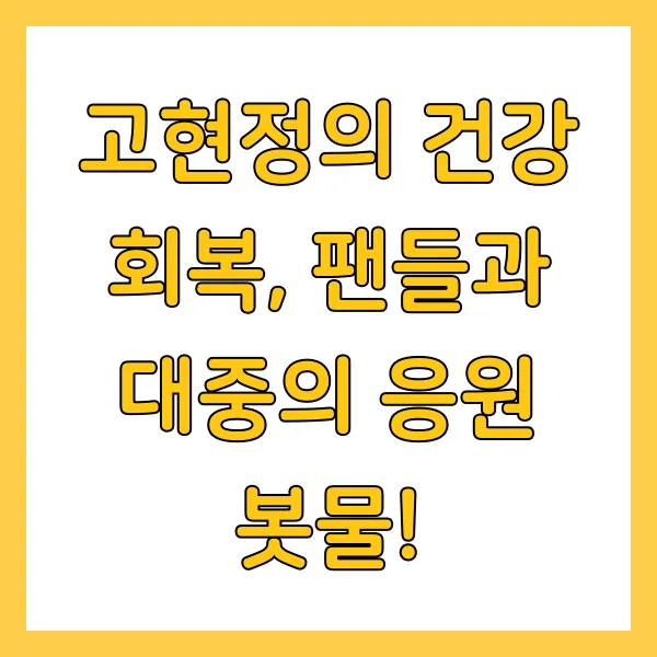 고현정 배우의 빠른 쾌유를 바라는 팬들의 응원 메시지가 SNS에 쏟아지고 있어요. "언니, 힘내세요💪", "얼른 나아서 돌아오세요😍", "건강이 최고예요🙏" 등등… 팬들의 따뜻한 마음이 고현정 배우에게 큰 힘이 될 거예요💖. 대중들 역시 그녀의 건강 회복을 기원하며 응원의 목소리를 높이고 있습니다. 모두의 응원 속에 고현정 배우가 다시 건강한 모습으로 돌아오길 간절히 바랍니다🙏!