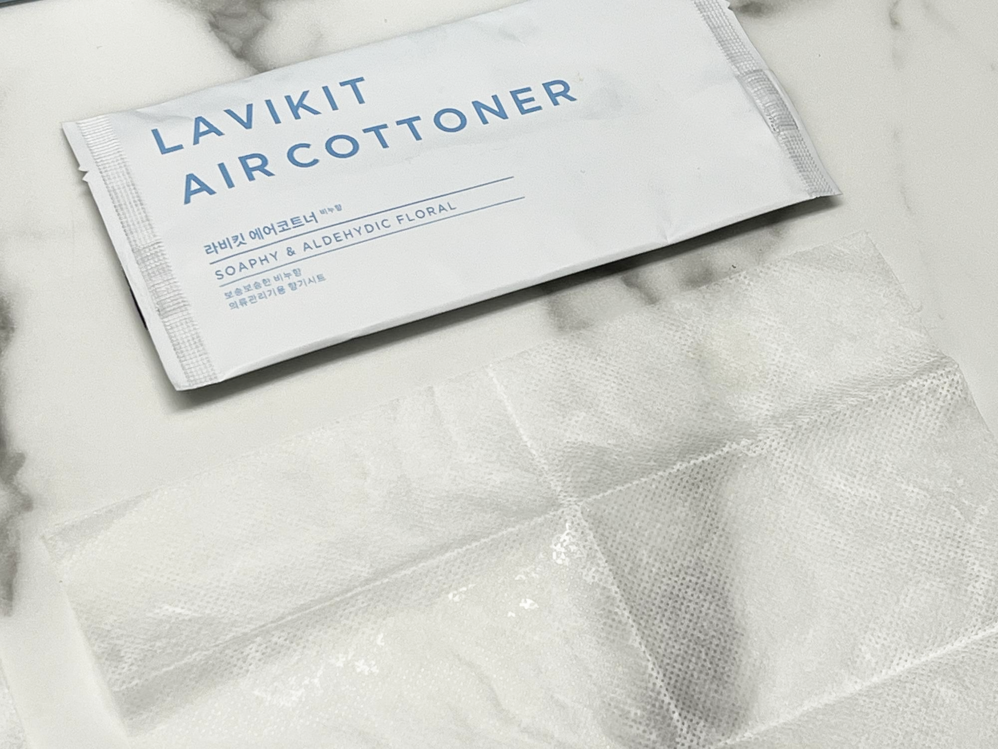 기존 향기 시트는 일반 물티슈 같은 재질이라면, 라비킷 에어코트너는 식당에서 주는 일회용 물티슈 아시죠?