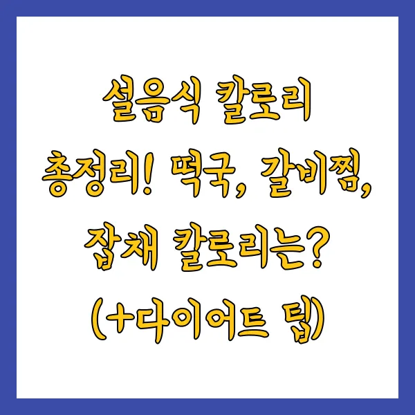 설 연휴, 맛있는 음식의 유혹을 이기지 못하고 과식하셨나요? 떡국, 갈비찜, 잡채 등 맛있는 설음식 칼로리 정보와 함께, 연휴 후유증 극복 다이어트 팁까지 알려드릴게요! 건강한 식단과 운동으로 몸도 마음도 가볍게 새해를 시작해 보아요!