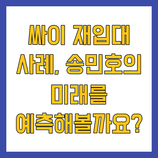 송민호 사건과 유사한 사례로 싸이의 재입대 사건을 빼놓을 수 없어요. 싸이는 2002년 산업기능요원으로 복무했지만, 부실 복무로 2007년 재입대 처분을 받았어요. 52사단에서 20개월을 복무하며 총 55개월이라는 긴 시간 동안 군 생활을 했죠.😱 재판과 쌍둥이 출산 등 어려운 상황 속에서도 육군참모총장 표창까지 받으며 재기에 성공한 싸이! 하지만 그 과정은 결코 쉽지 않았을 거예요. 송민호도 싸이처럼 재입대의 길을 걷게 될까요? 🤔 아니면 다른 처분을 받게 될까요? 모두의 이목이 집중되고 있어요!
