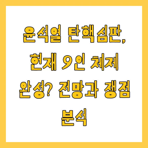 윤석열 대통령 탄핵심판을 둘러싼 헌법재판소의 움직임이 심상치 않아요! 9인 체제 완성 가능성과 함께, 비상계엄 선포의 위헌성 여부 등 핵심 쟁점, 그리고 정치적 파장까지, 여러분의 궁금증을 속 시원하게 해결해 드릴게요! 탄핵심판의 향방은 과연 어디로?! 지금 바로 확인하세요! (키워드: 윤석열 탄핵심판, 헌법재판소, 9인 체제, 비상계엄, 위헌성, 정치적 파장)