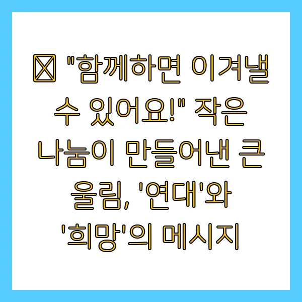 🤝 "함께하면 이겨낼 수 있어요!" 작은 나눔이 만들어낸 큰 울림, '연대'와 '희망'의 메시지