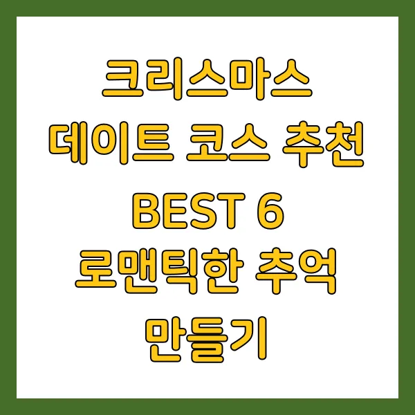 크리스마스 데이트, 어디로 갈지 고민이시라구요?🤔 걱정 마세요! 설렘 가득한 크리스마스, 잊지 못할 추억을 만들어줄 로맨틱한 데이트 코스 BEST 6 를 소개합니다!🎁 실내 데이트부터 야외 활동, 특별한 경험까지, 취향따라 골라 즐기는 최고의 크리스마스 데이트 코스를 지금 바로 확인하세요!😍 (크리스마스 데이트, 데이트 코스 추천, 로맨틱 데이트, 겨울 데이트, 크리스마스)