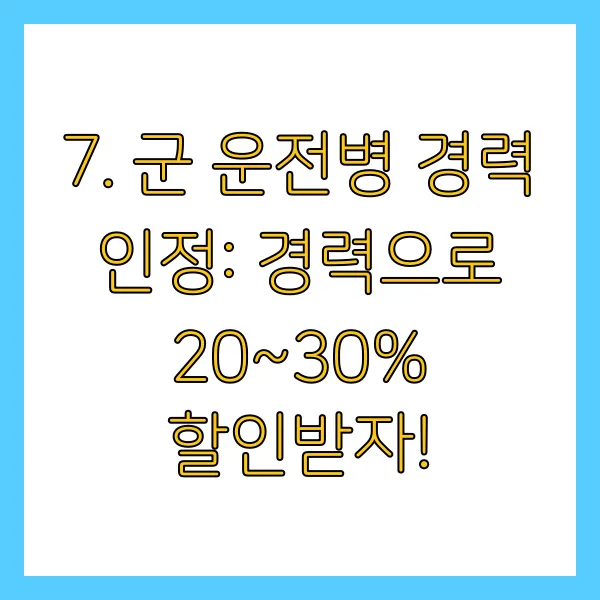 7. 군 운전병 경력 인정: 경력으로 20~30% 할인받자!